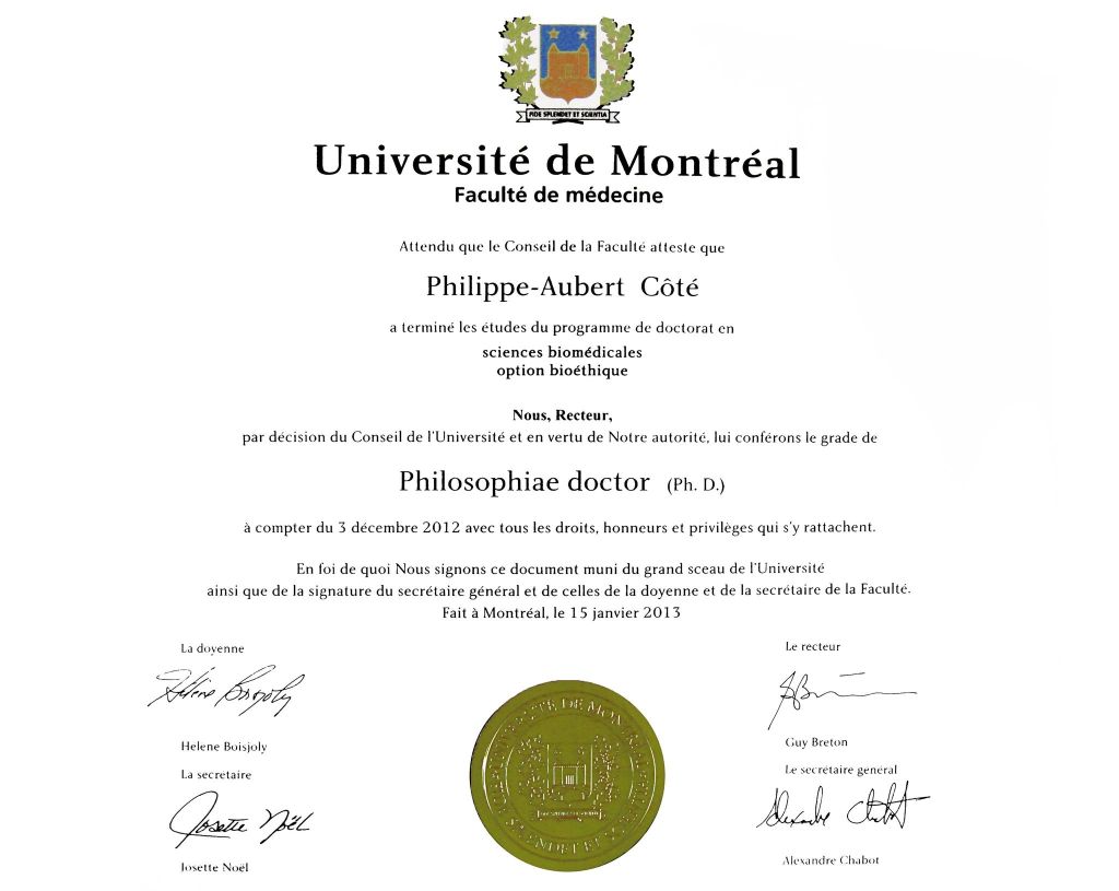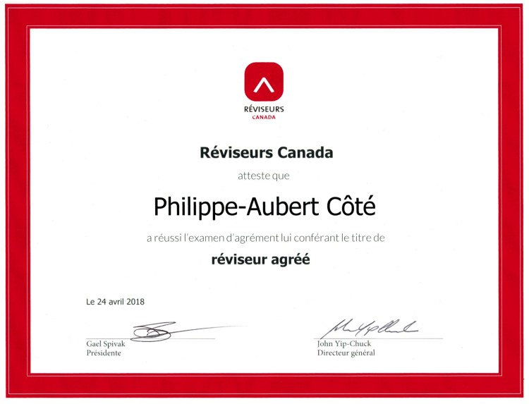 Certificats et diplômes Certificat d’agrément de Réviseurs Canada Certificat en rédaction professionnelle, avec spécialisation en révision Doctorat en Sciences biomédicales, option bioéthique Maîtrise en ressources renouvelables Baccalauréat en biologie